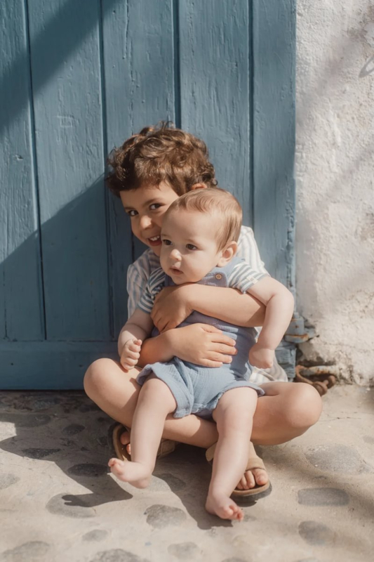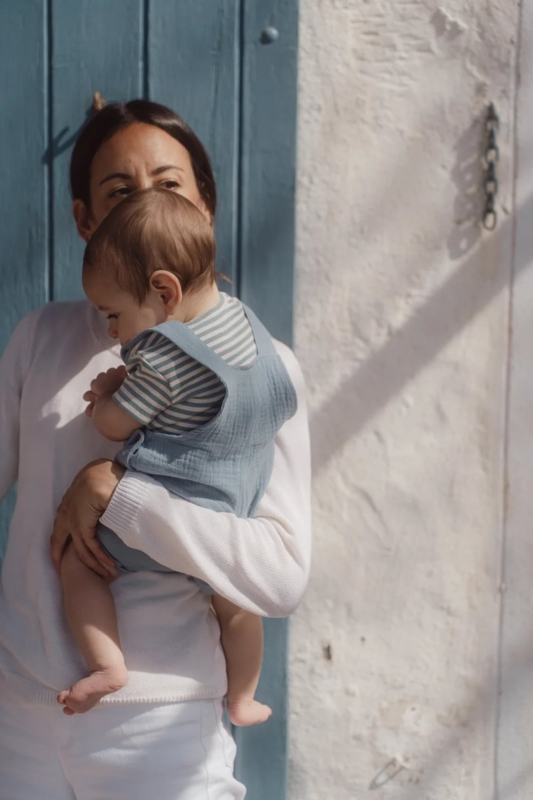 Little Dutch -Romper korte mouw blauw Stone Blue stripe