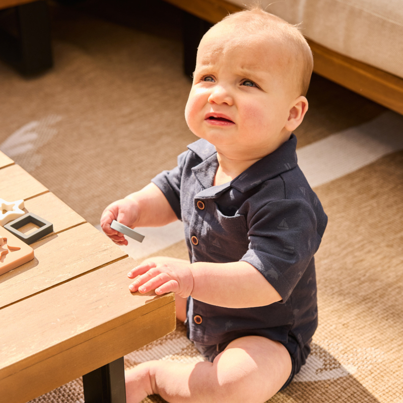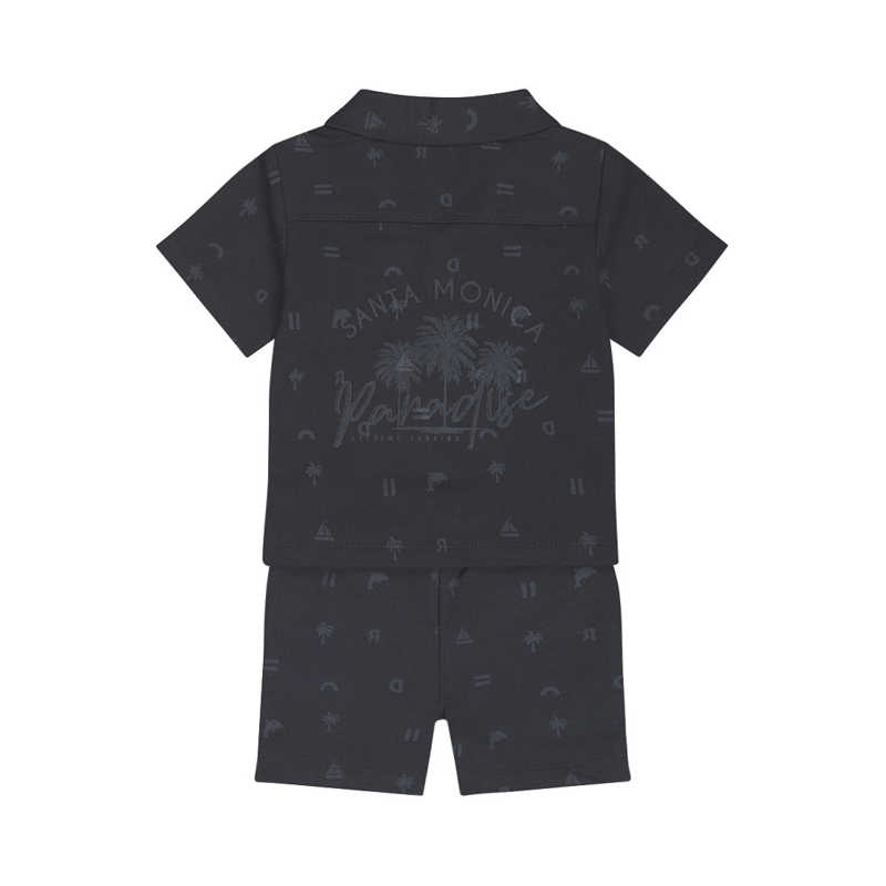 Deze Dirkje co-ord set met blouse en short is een echte favoriet voor warme dagen: luchtig, zacht en toch super verzorgd. De blouse heeft een nette kraag en knoopsluiting. De bijpassende short zit comfortabel dankzij de elastische taille met koord. De rustige donkerblauwe tint is tijdloos en de kleine print maakt het setje extra stoer. Deze jongens zomer set draag je samen als outfit of is los te combineren met andere items