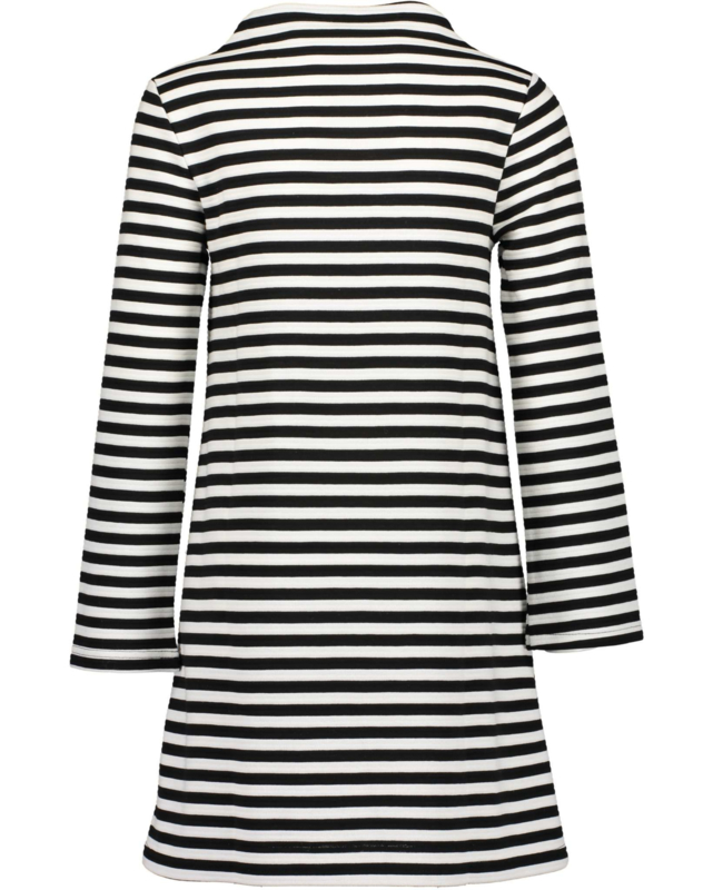 Zwart wit gestreepte jurk met een ronde hals en lange mouwen. Met een geborduurde tekst op het voorpand Smile