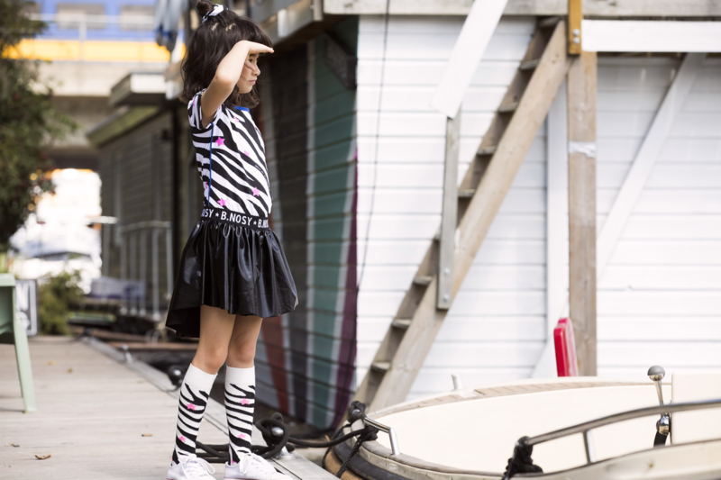 Jurk met Zebra print aan de bovekant met ronde hals en korte mouwen en een nep leren rok die aan de achterkant langer is. Elastisch band in de taille. Leuk te combineren met de sokken Y002-5910-30 Zebra.