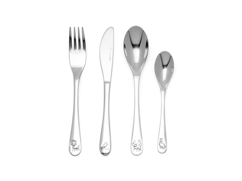 Zilverstad-Kindercouvert 4 dlg huisdieren-rvs-silver