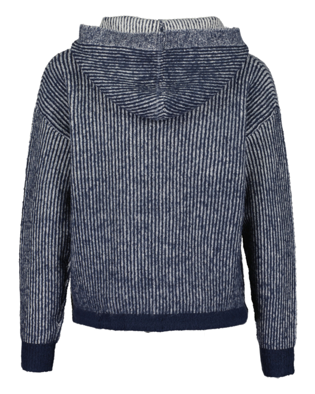 Meisjes sweater met capuchon en lange mouwen. Bebreid in blauw -wit