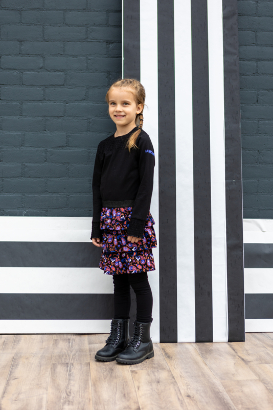 Een lange zwarte legging met een elastische tailleband. Combineerd met de verschillende items uit de wintercollectie