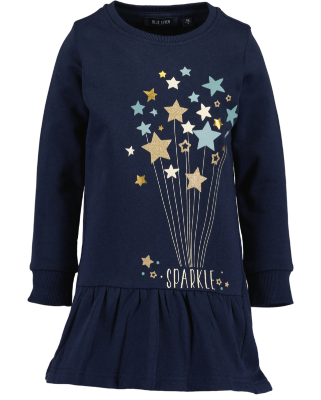 Een donker blauw Blue Seven t-shirt met een ronde hals en lange mouwen. Op de voorkant een print met een ster en de tekst Sparkle
