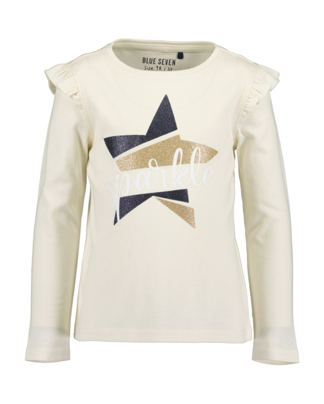 Een gebroken wit Blue Seven t-shirt met een ronde hals en lange mouwen. Op de voorkant een print met een ster en de tekst Sparkle